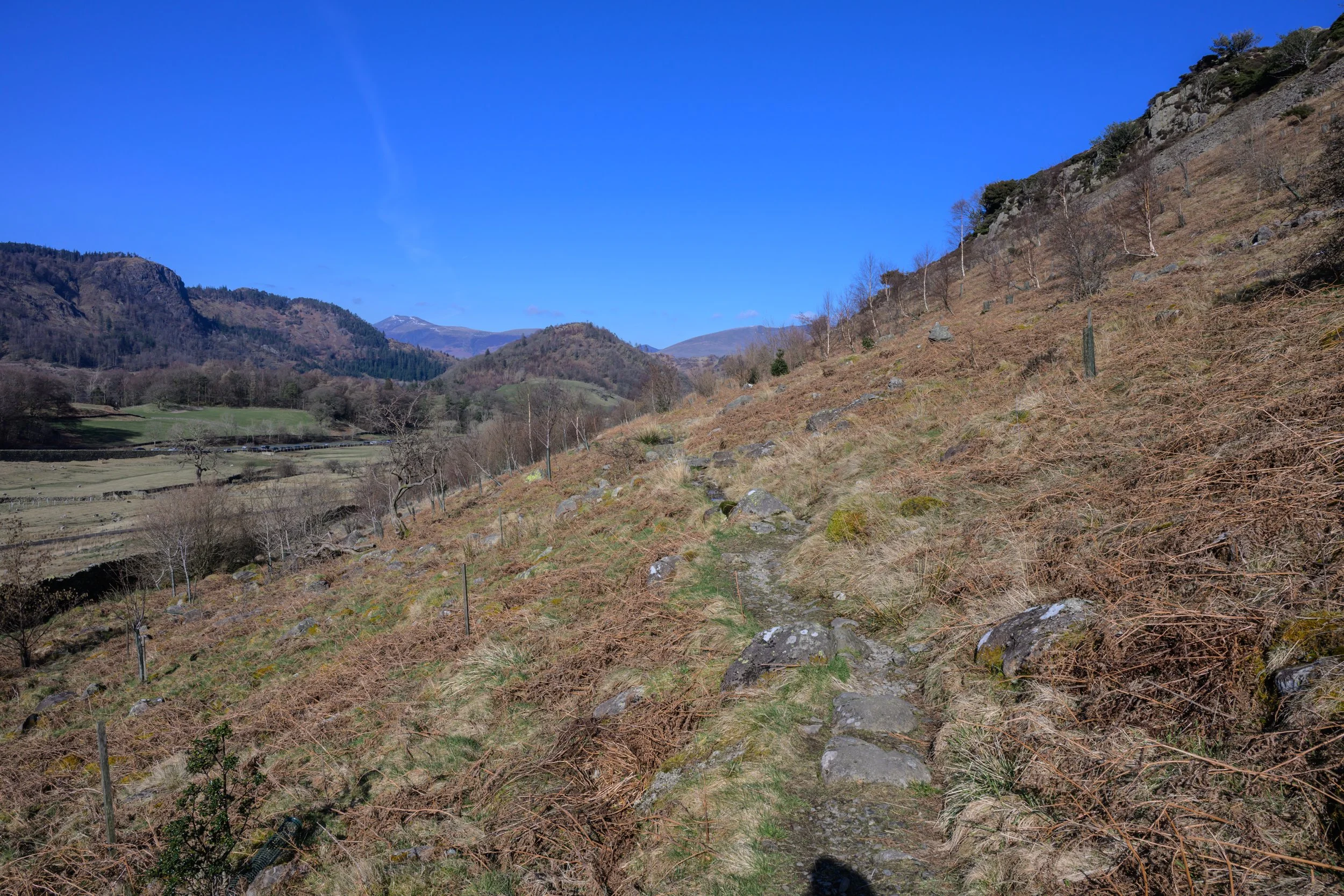 After a short distance you will reach a signpost - follow the left hand path across the side of the hill towards Stanah (the right hand pass climbs to Helvellyn)