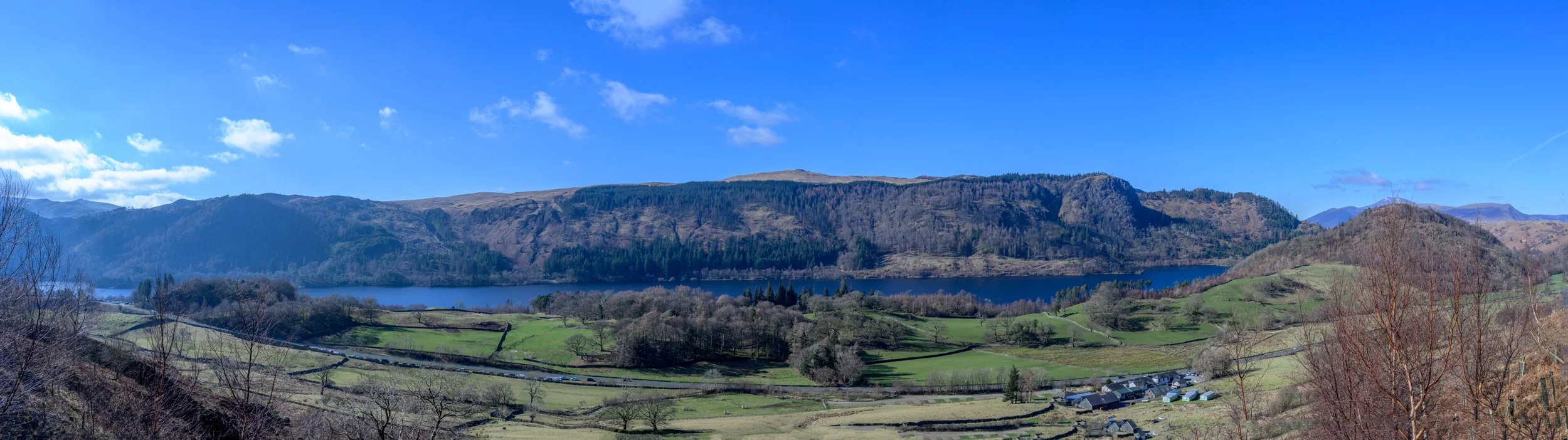 Thirlmere, just south of Keswick, in the Lake District, is a 3.5-mile-long, 158-foot-deep reservoir that was formed in 1894 by damning two smaller lakes and drowning two villages in the process – Armboth and Wythburn, to supply water to Manchester. It is still owned and maintained by United Utilities. The road over the dam at the northern end of the lake has been closed to vehicles but is still accessible by foot or bicycle. The lake is bordered by the Helvellyn range to the east and High Seat and Blueberry Fell to the west and offers a variety of scenic, wooded shoreline walks.