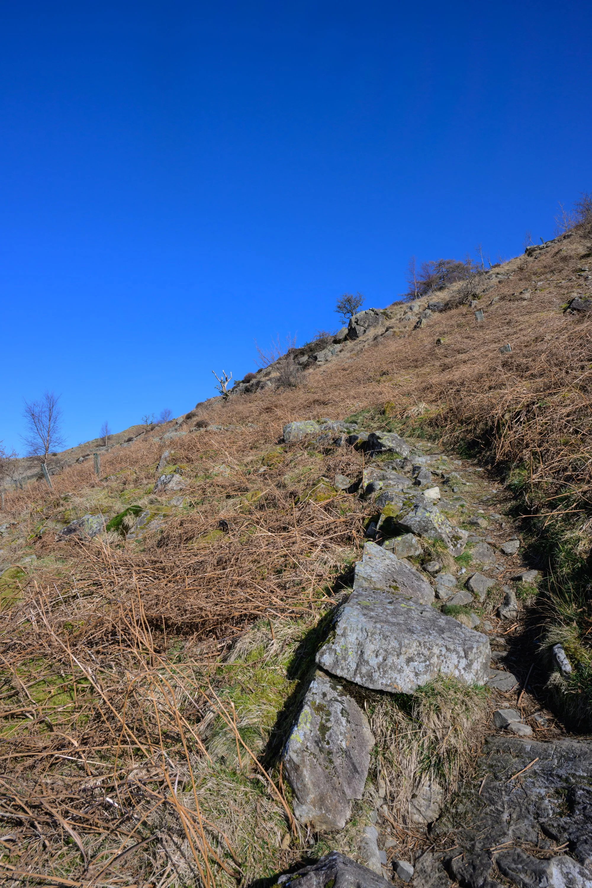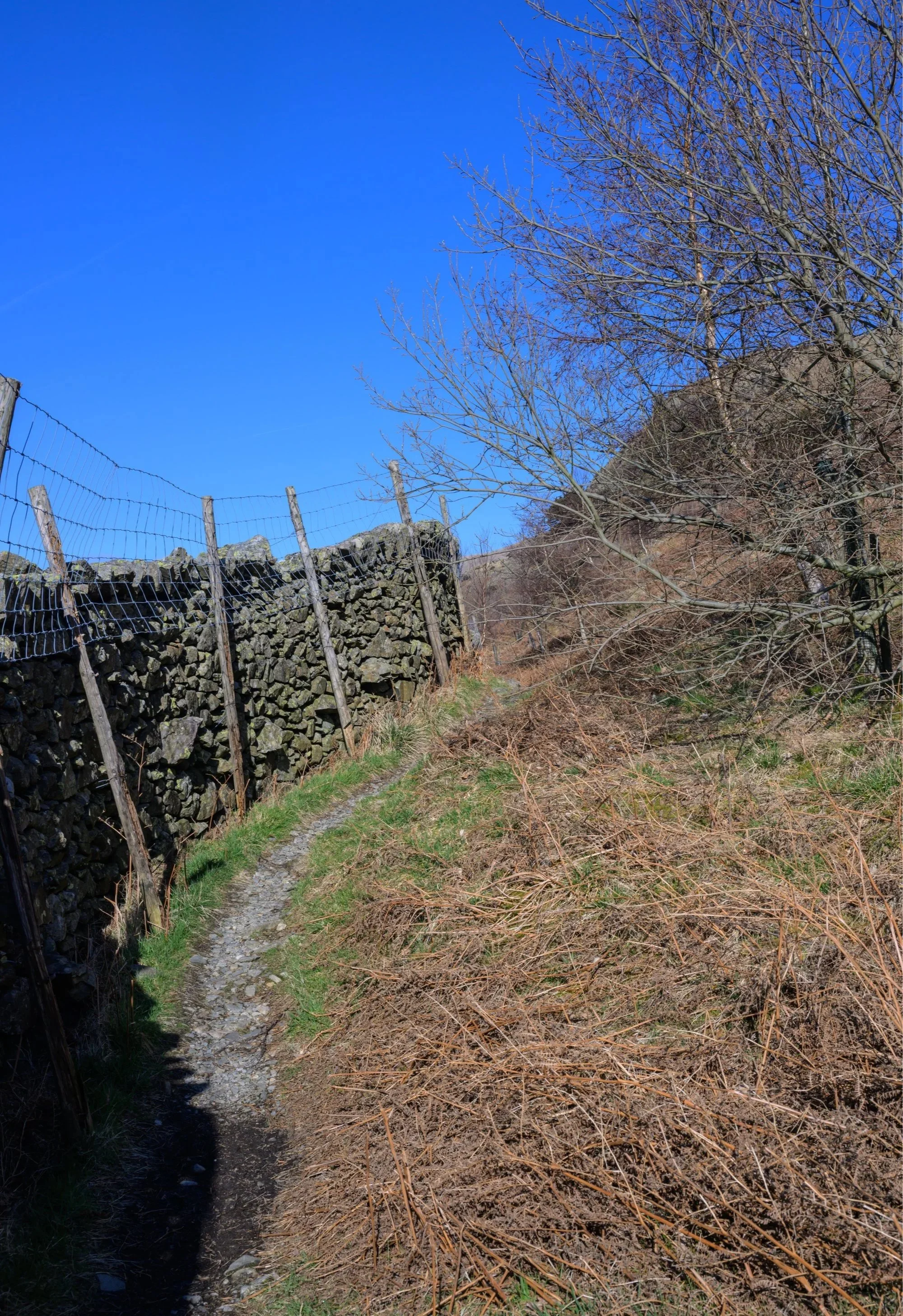 When you reach a fork at the highest part of the wall take the right hand fork further up the hillside